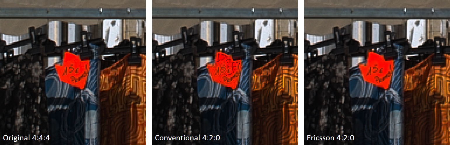 To the left we see the original image. In the middle we see what happens if we only change the transfer function, without the special processing – artifacts appear. To the right we see what happens if we change the transfer function and apply Ericsson’s special processing.