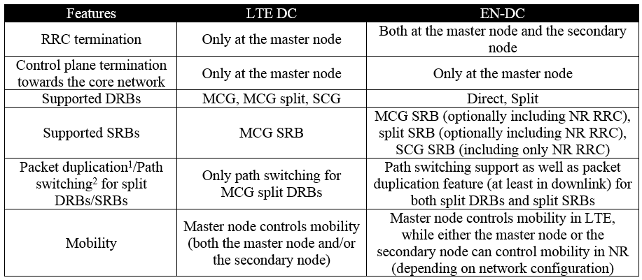 In EN-DC, a mobile device has a second Radio Resource Control (RRC) termination at the secondary node, unlike LTE DC where there is only one RRC termination point – at the master node. The separation of LTE and NR RRC termination points enables the secondary node, depending on network configuration, to trigger the intra-NR mobility, that is, initiating secondary node change/release/modification. In LTE DC, only the master node was able to do this.