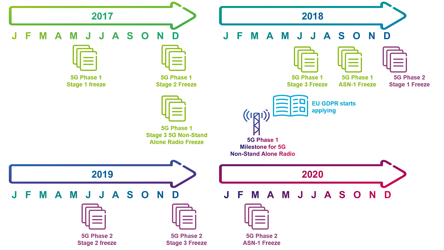 The EU GDPR is an EU regulation (2016/679) designed to harmonize personal data protection laws across the EU member countries. It has entered into force but shall apply from May 25, 2018. Coincidently, the timeline of the EU GDPR applicability matches the 5G standardization release plan. This is, in fact, a good coincidence, because 5G standards have addressed privacy issues right from the beginning and the first release of 5G already has many important privacy features.