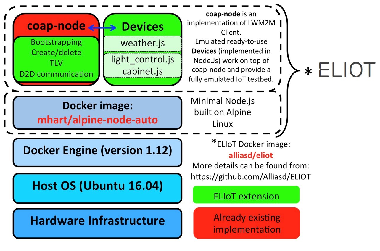 This is why we have built an Emulated IoT Platform (ELIoT) for those interested mostly in the software and server side of things and that just want to have endpoints that are addressable and can be interacted with over common application protocols.