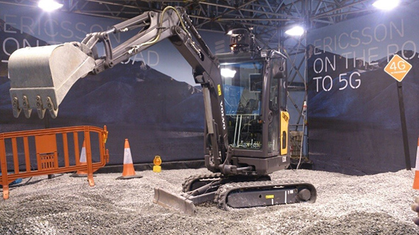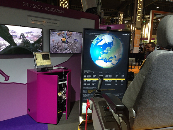 Remote control of a full-size excavator with haptic feedback, MWC 2015