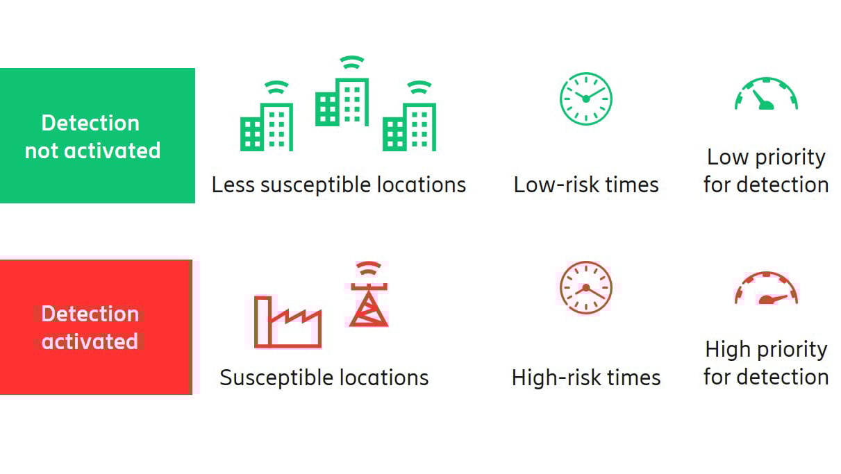 Further, this detection framework offers immense flexibility for the network in choosing how to collect and analyze information. It goes without saying that privacy must be seriously considered right from the start and therefore proper data protection needs to be done at every stage of data collection and data analysis. The starting point for such an analysis is especially good in this case, because subscribers’ long-term identifiers are not present in the base stations for normal operations. Therefore, accidentally linking any collected data to particular subscribers is a priori difficult. Nonetheless, great care must be taken so that privacy problems are not inadvertently introduced. Implementations of this framework must be in compliance with regulations, like GDPR in Europe. Examples of the above-mentioned flexibility are shown in Figure 2. The network could choose to use information for detection only at susceptible locations - like a parliament building (examples reported by The Washington Times, Aftenposten, and CBC News), certain dates or times, or when detection priority is high for example during high-profile international events.