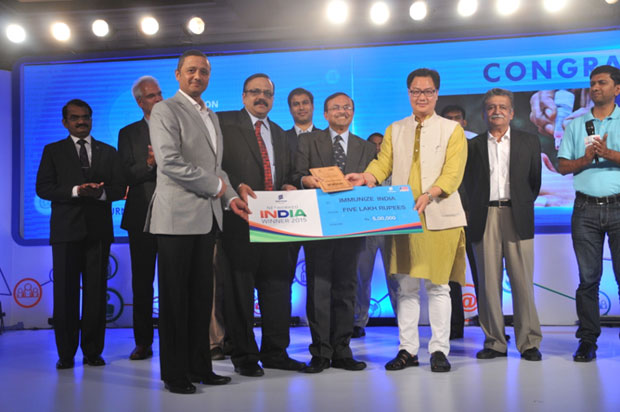 Team Immunize India receives the prize from the Chief Guest MoS Kiren Rijiju