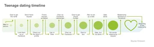 The survey shows that the common usage of texting and Facebook has changed the dynamics of teenage dating. The biggest changes can be seen in the courting process, where the goal is to ask the other person out on a date. However teenagers still meet potential romantic partners face-to-face.