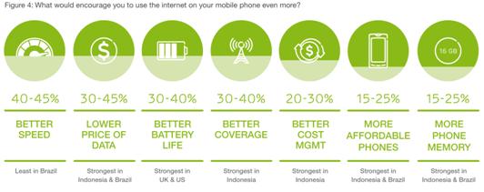 40-45% of respondents said they would use internet on their mobile phones more if they had access to better speed