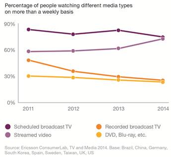 Ericsson ConsumerLab: streaming closing in on traditional TV as users want "anywhere access"