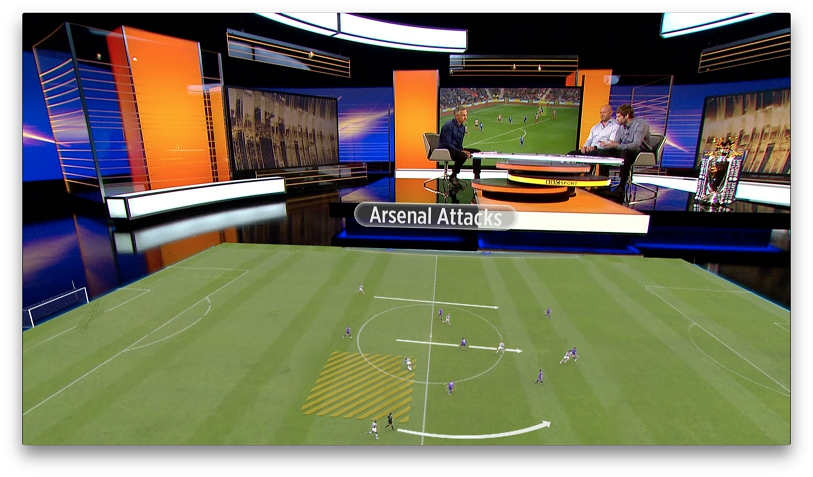 Ericsson's Piero Augmented Reality enables broadcasters to overlay 3D graphics in real-time during live studio productions and sports games. Sports analysis graphics can be produced instantly either by a system operator or by a presenter using a tablet device. The graphics are then projected onto the studio floor in 3D allowing broadcasters to illustrate the analysis sequence without cutting away from the studio environment. The software is currently being tested by the BBC for its iconic football highlights TV program, Match of the Day.
