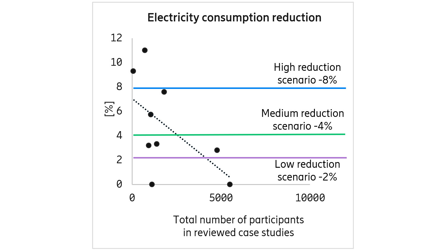 A low reduction scenario of 2%, yields an enabling effect that can be conservatively claimed today. For the medium reduction scenario of 4% a near real-time feedback and active households is required.