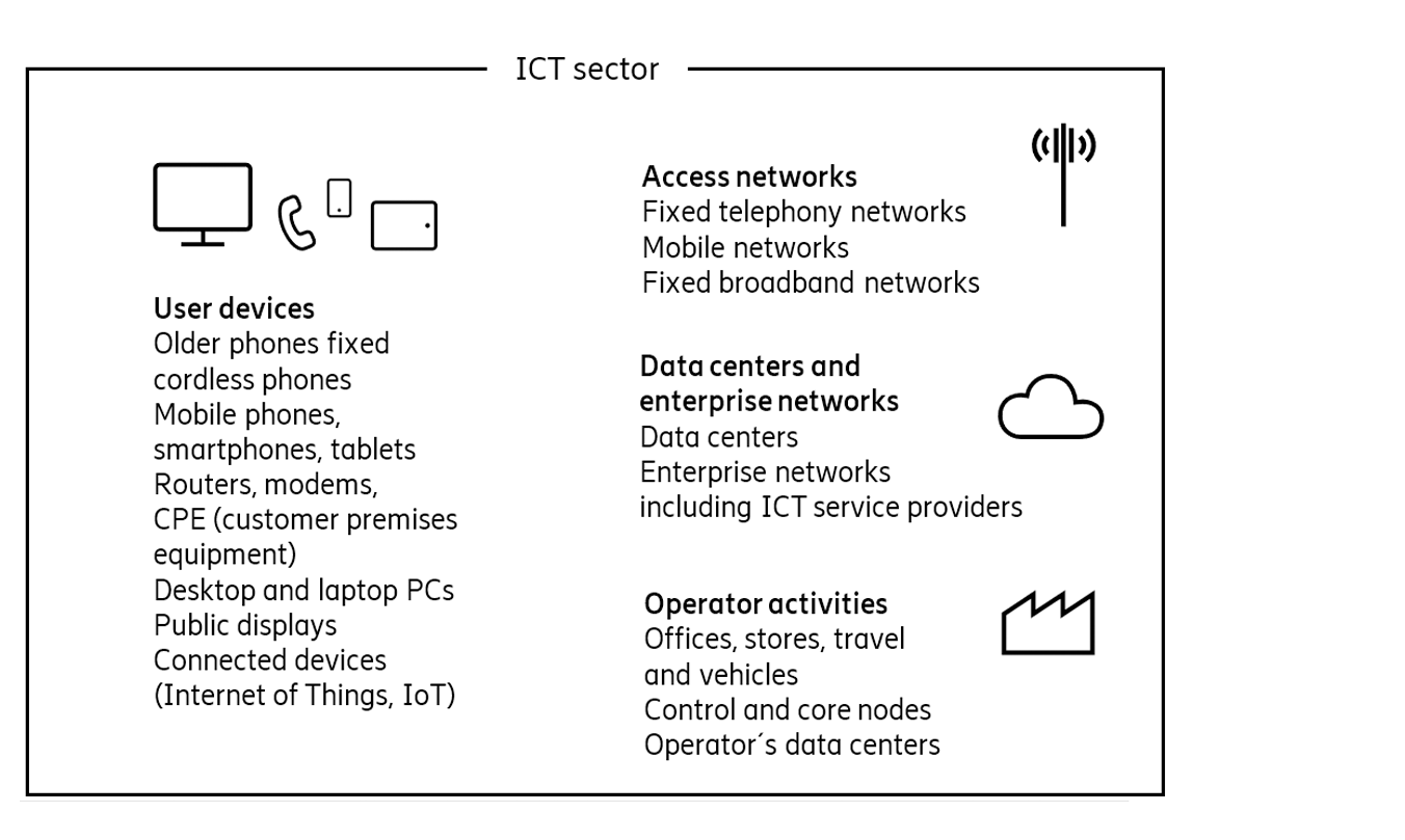 The ICT sector’s carbon emissions relate to user devices, such as phones, tablets, computers and modems, followed by ICT networks for both fixed and mobile access, and data centers, including enterprise networks and operator activities. Compared to 2010, the networks’ share of the footprint has slightly increased, while the share linked to user devices has decreased.