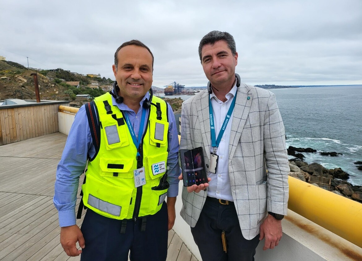 Foto: Carlos Mondaca, Gerente Asuntos Corporativos del Puerto de San Antonio y Roberto Cabanillas Acerbi, Director Servicios Digitales de Ericsson Chile