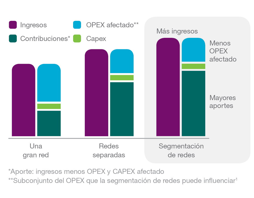 - La segmentación de redes tiene el potencial de ofrecer beneficios económicos en cuanto a mayores ingresos y menores gastos operativos, siempre y cuando se asuma la automatización operativa y un cambio radical en el número de lanzamientos de servicios del operador.