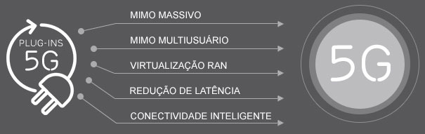 - Plug-Ins orientados por software levam a evolução flexível do 5G para as redes existentes, ao mesmo tempo em que melhoram a banda larga móvel, as redes fixas sem fio e os serviços de Internet das coisas para as operadoras.